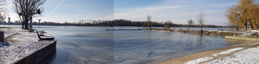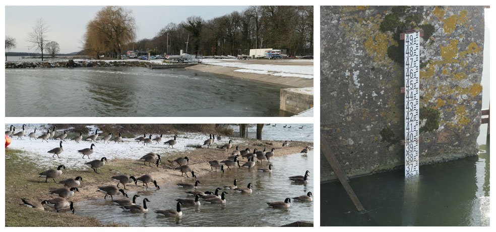 Vent de NE, température 3° à l'ombre - 5° au soleil et l'étang figée sur une partie de la rive sud...